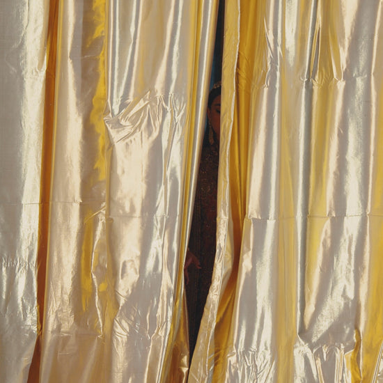 A beautifully draped copper-rust front open jacket with a dramatic back trail, adorned with 3D flowers, sequins, and antique gold embellishments with teal accents. Paired with a heavily embellished lehenga, matching dupatta, and jamawar blouse, this tissue fabric ensemble radiates regal elegance and timeless sophistication.